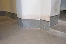 - Zwischen der oberen Edelstahlleiste und dem Verputz ist keine Dehnungsfuge notwendig, da die Einhängeplatte ohnedies in der Schiene genug Spielraum für das Dehnungsverhalten hat. Zwischen unterer Schiene und Boden ist eine Silikonab-dichtung sinnvoll, damit Aufwischwasser nicht hinter die Leiste fließen kann.